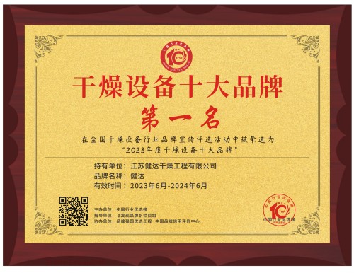 中国行业优选榜联合《发现品牌》栏目组、品牌强国优选工程等权威组织共同发起的年度“干燥设备十大品牌”评选活动圆满落幕。健达干燥通过不断创新研发,打造工匠产品,提高项目申报通过率,在“中国干燥设备行业十大品牌”评选中获得中国十大干燥品牌第一。